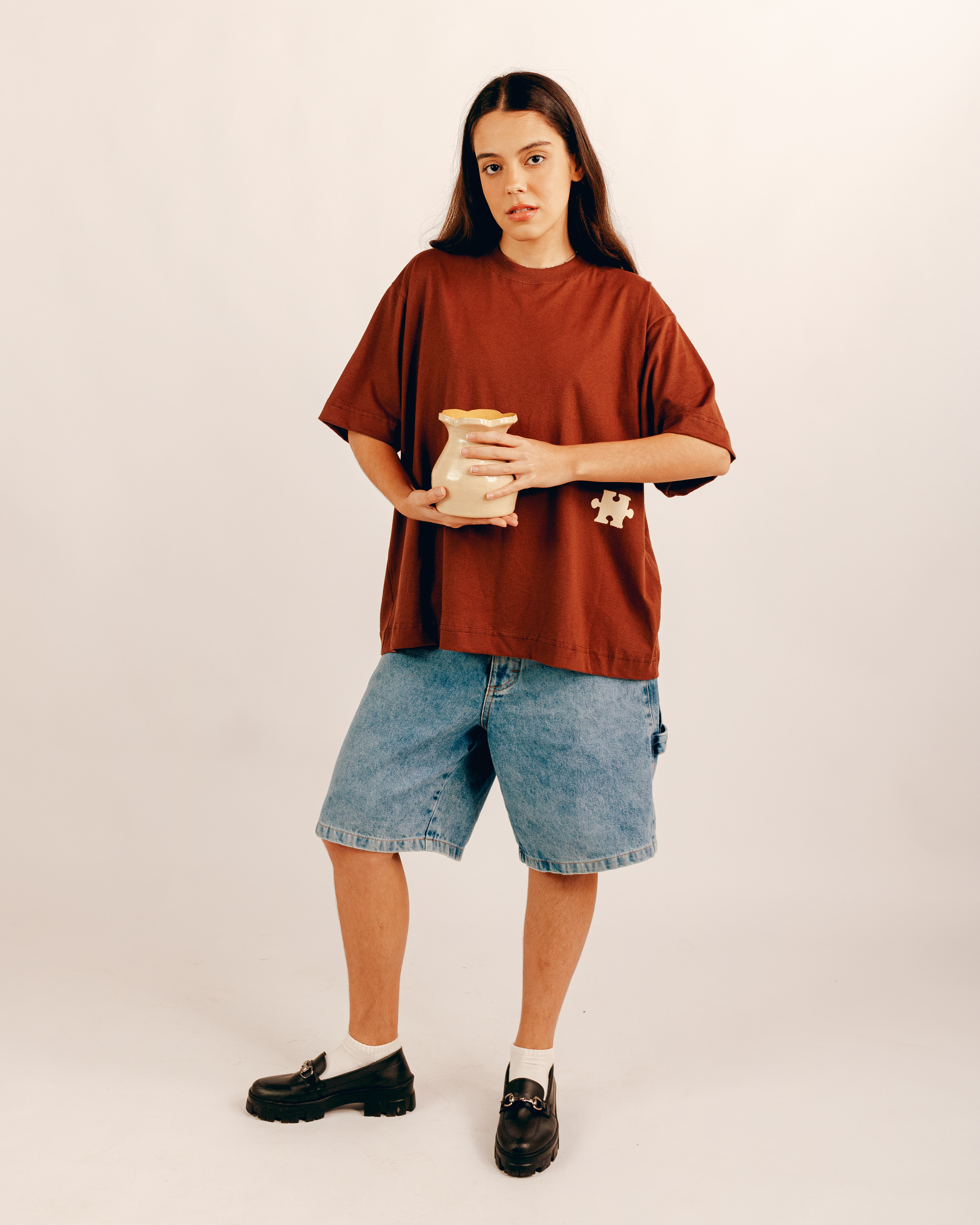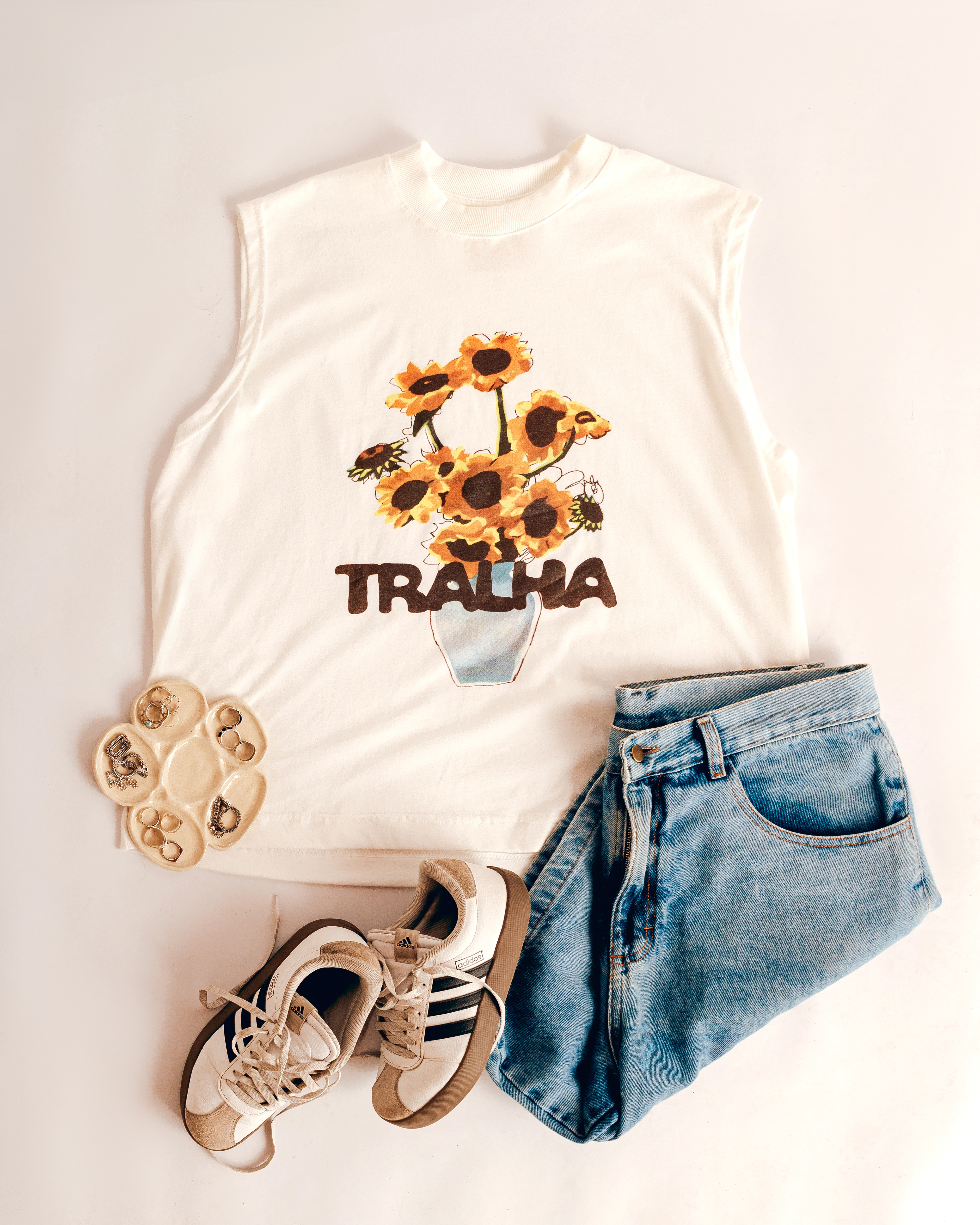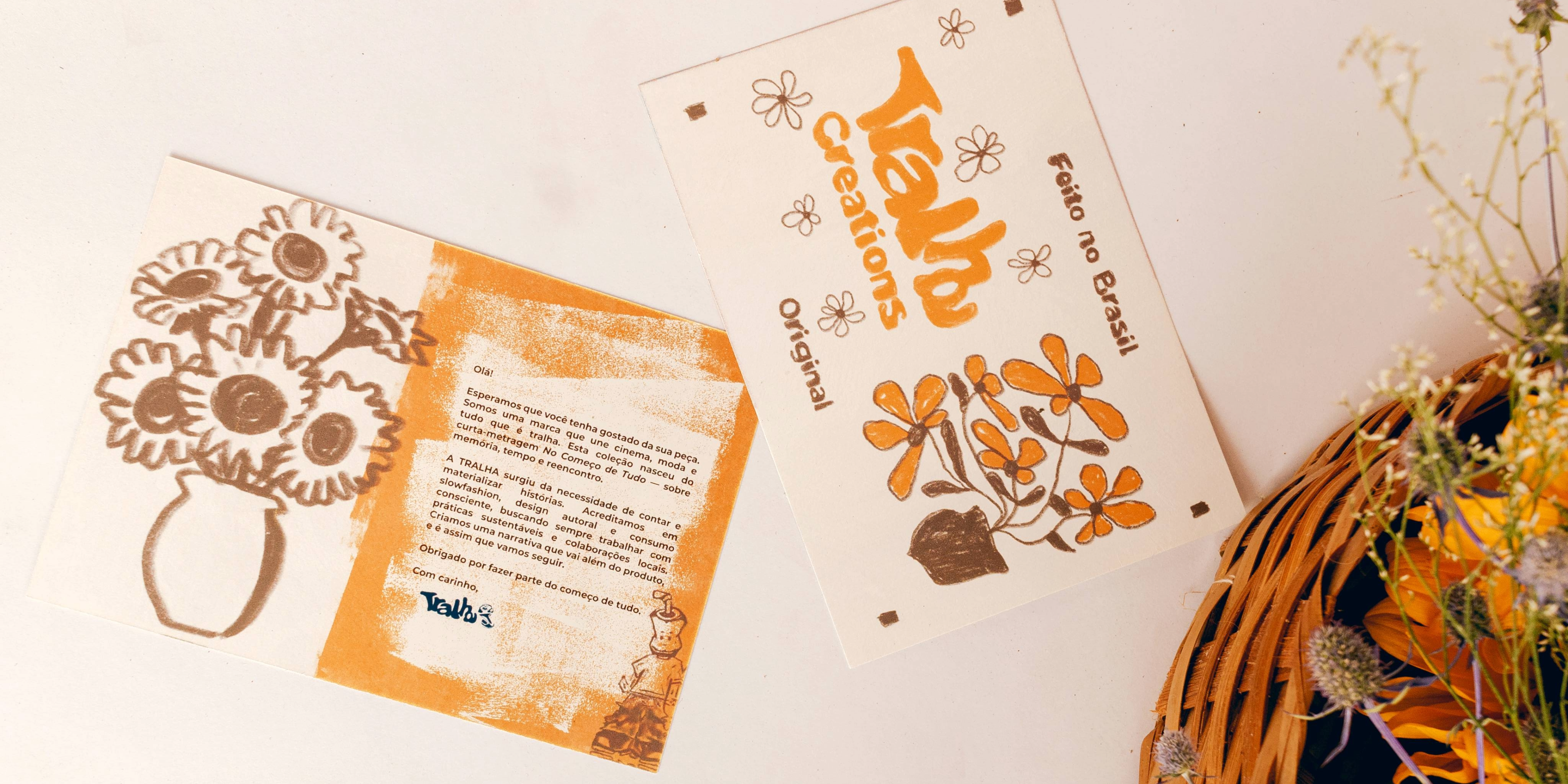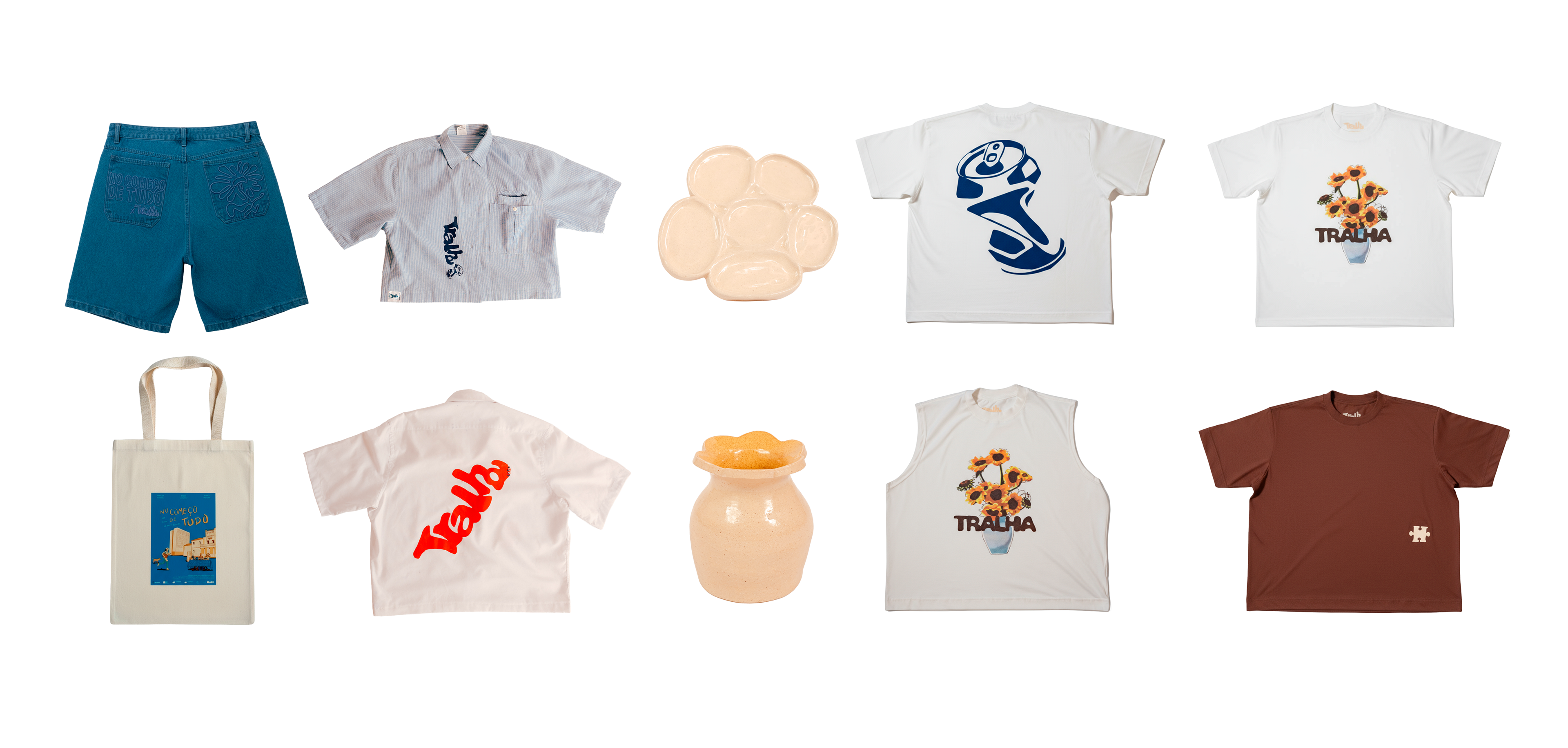 A estética foca em texturas vividas (ruínas, reboco, granulação) e na metáfora do “quebra-cabeças”, além de grafismos inspirados em telas não finalizadas ou deixadas de lado. As artes plásticas são o eixo central: cada estampa começa como uma pintura única antes de virar grafismo, princípio que a Tralha mantém como base do processo criativo.