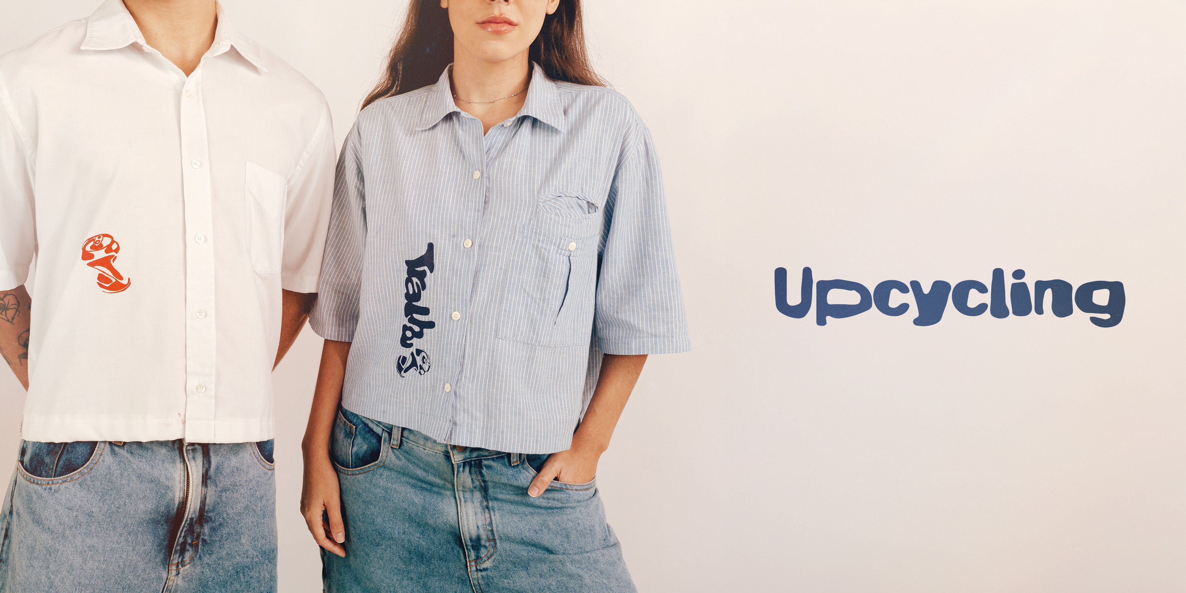 Upcycling é ressignificar o que já existe, evitando que tecidos sejam descartados e reduzindo desperdício têxtil. O material é reaproveitado e reconstruído, ganhando nova forma e propósito. Nesse processo, cada peça é única, e cada tralha tem seu valor.