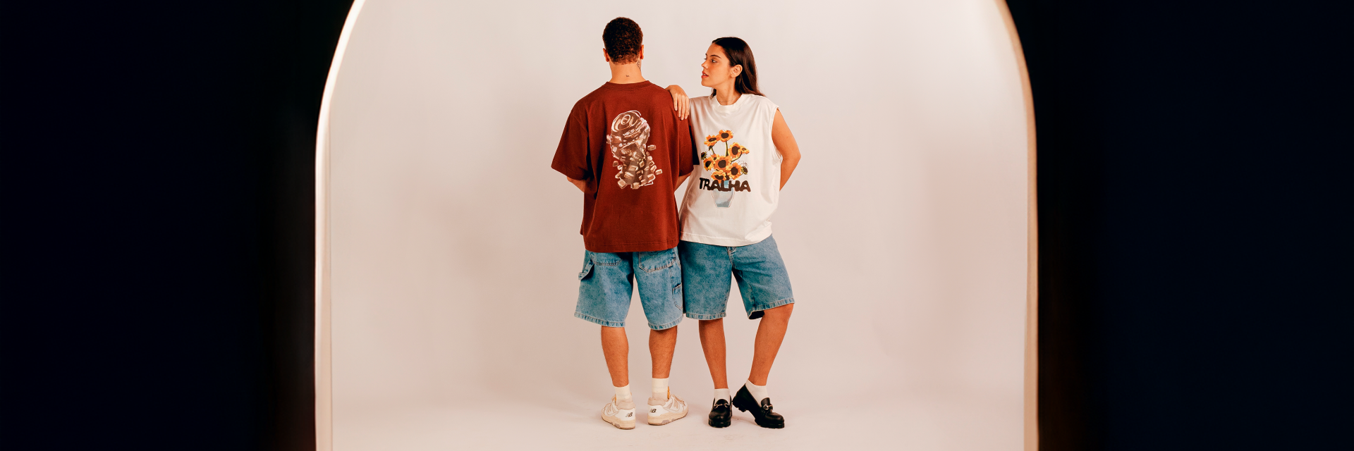 Tralha Home leva o que você veste pra dentro de casa. Porque estilo não é só roupa, é como você vive, os objetos que te cercam, o espaço que você constrói. Casa boa é aquela que inspira, que tem história. Casa boa é aquela que tem TRALHA.